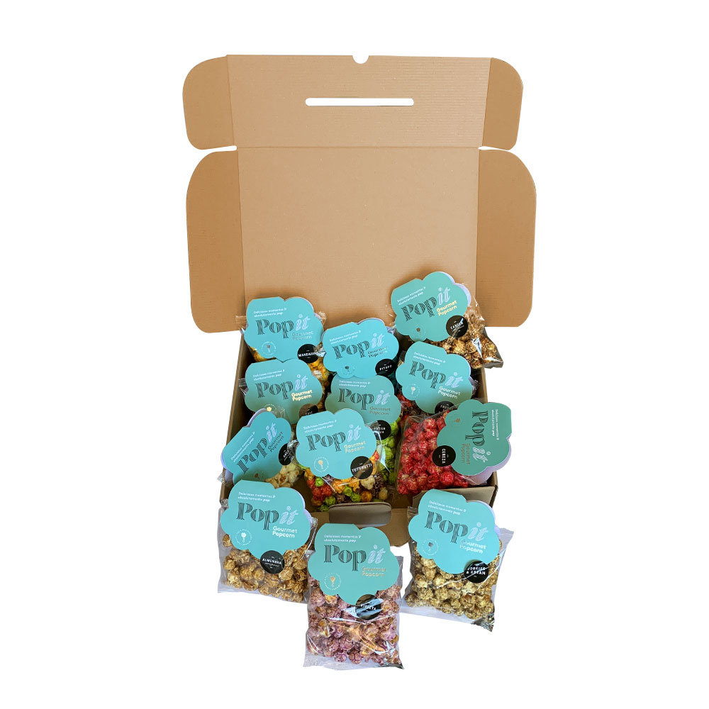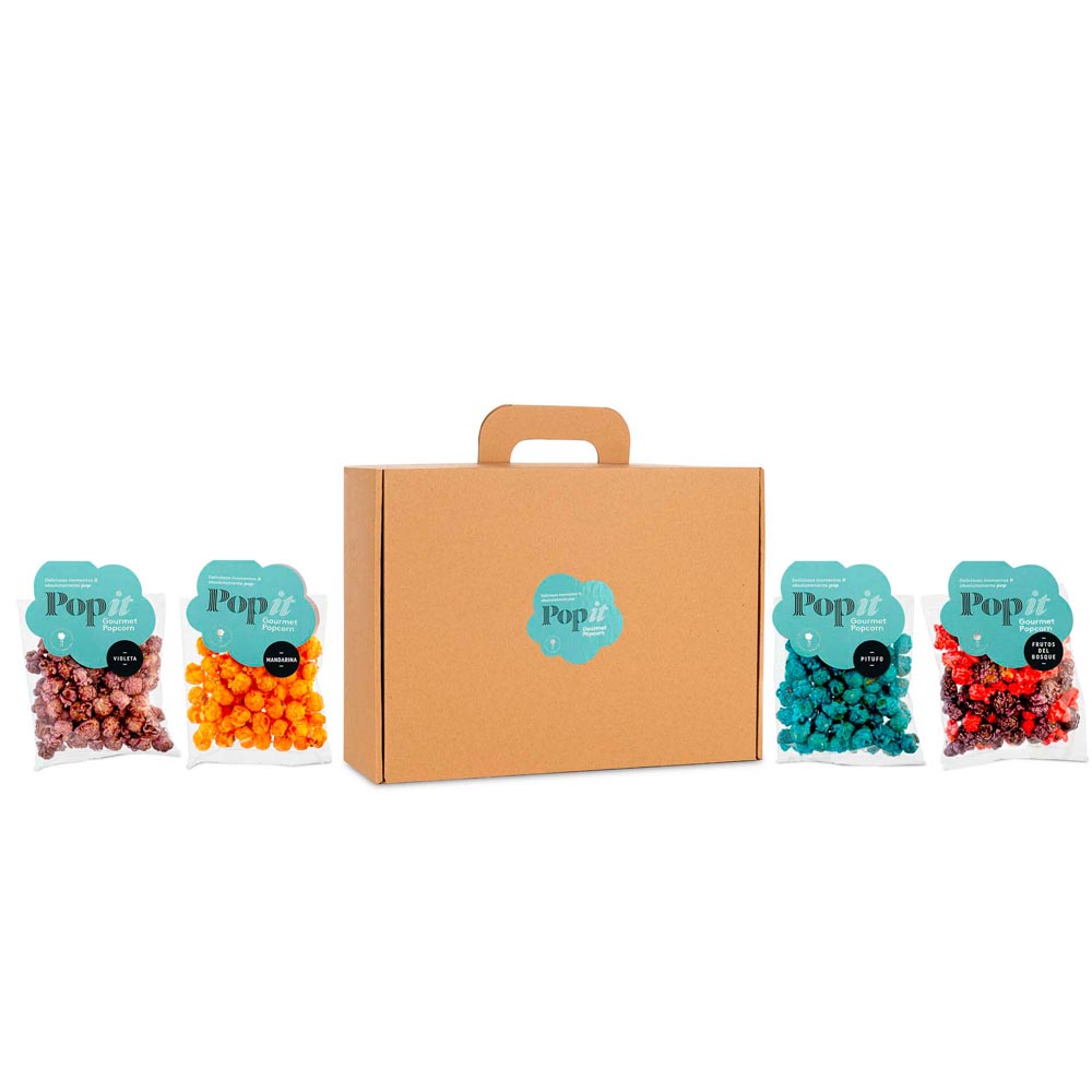 Las palomitas gourmet Popit están elaboradas con un maíz especial de origen europeo que hacen que tengan un tamaño y forma muy especial. Para cada sabor se utilizan diversos saborizantes, colorantes o ingredientes naturales para conseguir deliciosos y sorprendentes sabores.