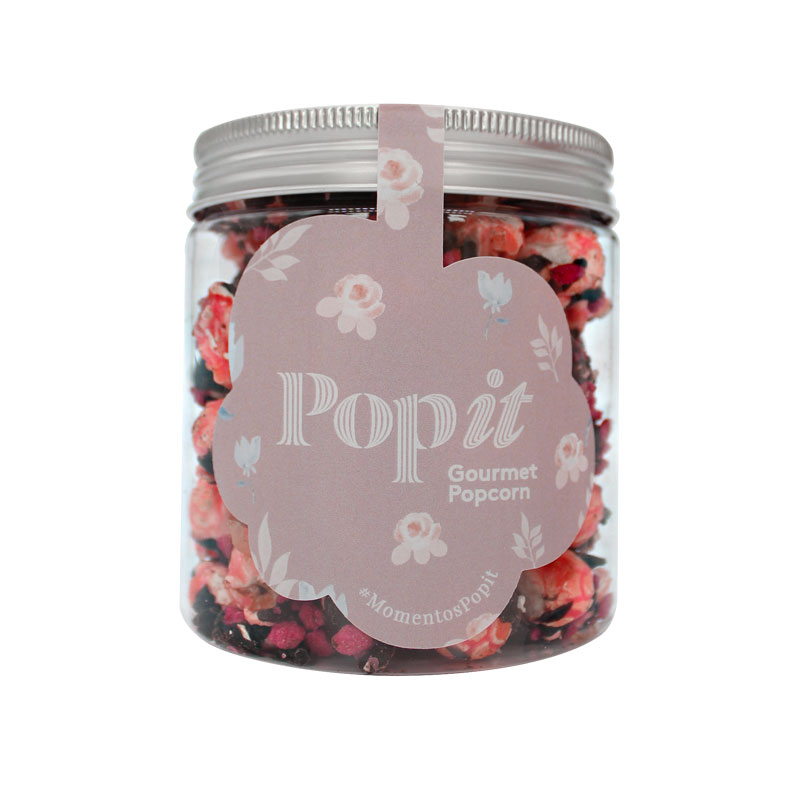 Nuestras palomitas Popit Gourmet bañadas en esencia de rosa 100% natural y recubiertas con una doble capa de chocolate negro y acabadas con delicados trocitos de pétalos de rosas cristalizados . Un bocado que despertará los sentidos de los más exquisitos y que deleitará gracias al crujiente maíz de Popit y de los pétalos de rosa cristalizados que acompañan este producto tan especial. Una Edición Limitada prestigiosa y elegante.